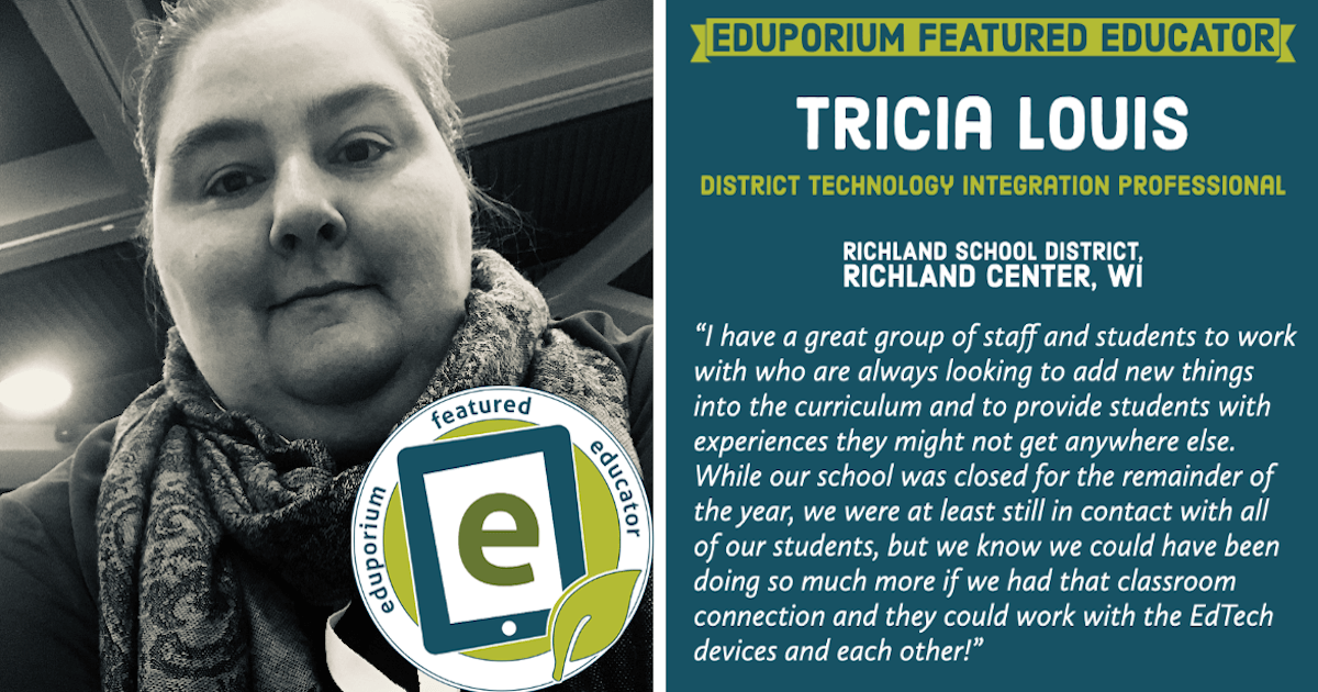 We’re back with more EdTech success stories to share through our Eduporium Featured Educator series. The latest educator we connected with is Tricia Louis, a tech integration specialist with the Richland School District in Wisconsin. Tricia has worked with a number of EdTech tools and given the students she coaches a ton of positive experiences. We’re excited to share Tricia’s story and hopefully inspire more educators to take chances in the classroom and unlock new learning opportunities with technology!
