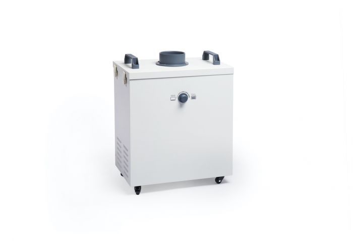 The Glowforge Air Filter is an add-on that allows anyone to use their Glowforge machine anywhere, since Class 1 and 4 lasers do require ventilation. The size of a recycling bin, it sits on the ground near your Glowforge printer and cleans the air, allowing you to fully operate the machine anywhere in your school.